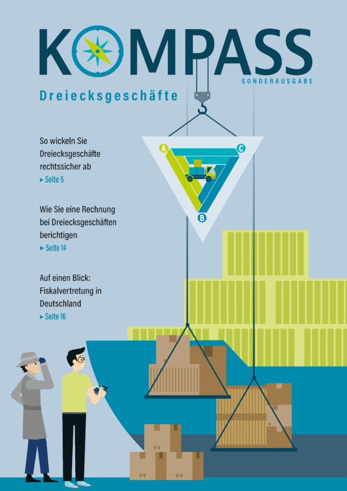 Wer die Fachzeitschrift KOMPASS abonniert hat, erhält diesen Monat zusätzlich zur regulären Ausgabe auch das Sonderheft zum Thema Dreiecksgeschäfte. Dank nützlicher Infografiken sind Sie in Sachen Zoll und Export stets auf dem neuesten Stand – leicht verständlich erklärt.