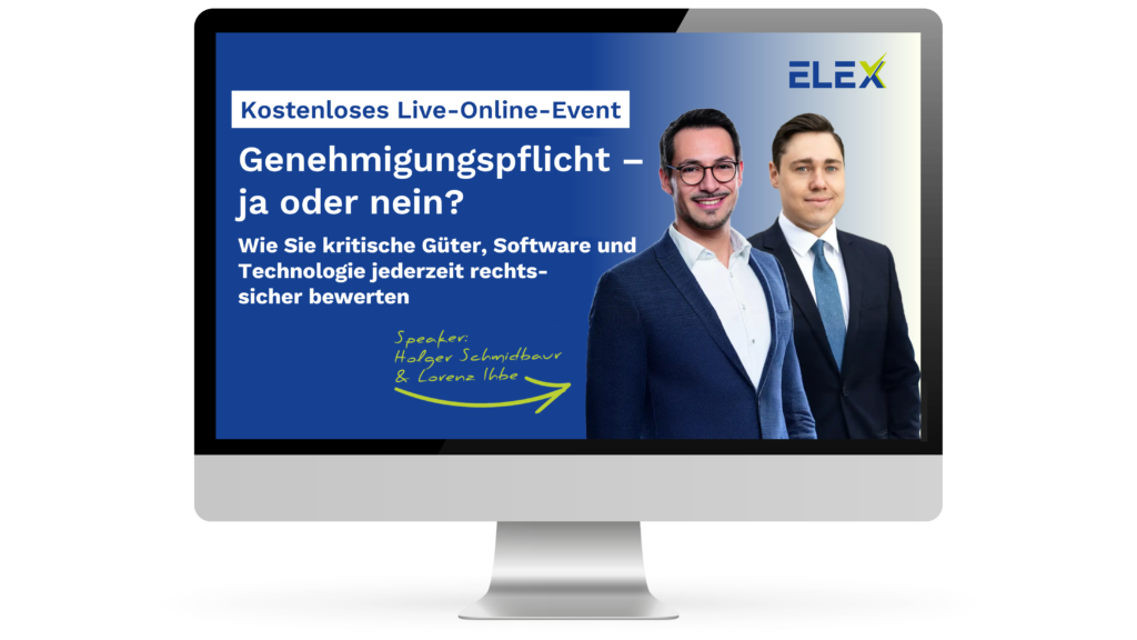 Der Online-Berater kennt sich als Teil des ELEX-Teams bestens mit dem Tool aus und zeigt Ihnen genau die Tricks und Kniffe, die Ihre Exportkontrolle ab sofort zu einem Kinderspiel machen. Er führt Sie gemeinsam mit Holger Schmidbaur durch das Event und berät Sie rund um ELEX.