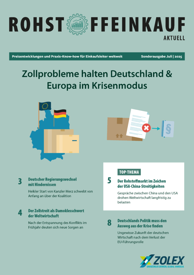 „Rohstoffeinkauf aktuell“ ist der internationale Preis- und Marktradar für Einkaufs-Profis. Hier erhalten Sie umfassendes Praxis-Know-How, wertvolle Expertenempfehlungen zum Rohstoffeinkauf und einen Überblick über weltweite Preisentwicklungen.